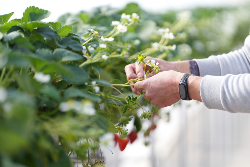 天候や季節に合わせて水やりや温度管理を徹底し、いちごが一番気持ち良く育つ環境を整えています。